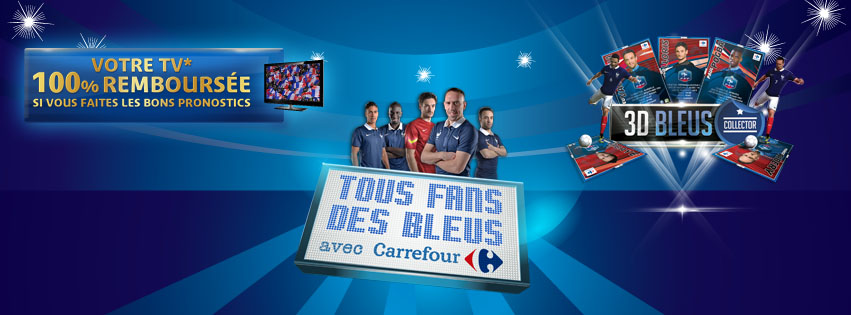 Pour booster ses ventes de téléviseurs à l’occasion de ce moment fort, Carrefour met en place également une opération intéressante qui vous permet de vous faire rembourser votre TV (40 pouces minimum) achetée jusqu’au 24 mai prochain ! Pour cela, il vous faudra trouver et pronostiquer les scores des 3 premiers matchs des Bleus lors de la Coupe du Monde 2014 (France – Honduras le 15 juin, France – Suisse le 20 juin et France – Equateur le 25 juin).