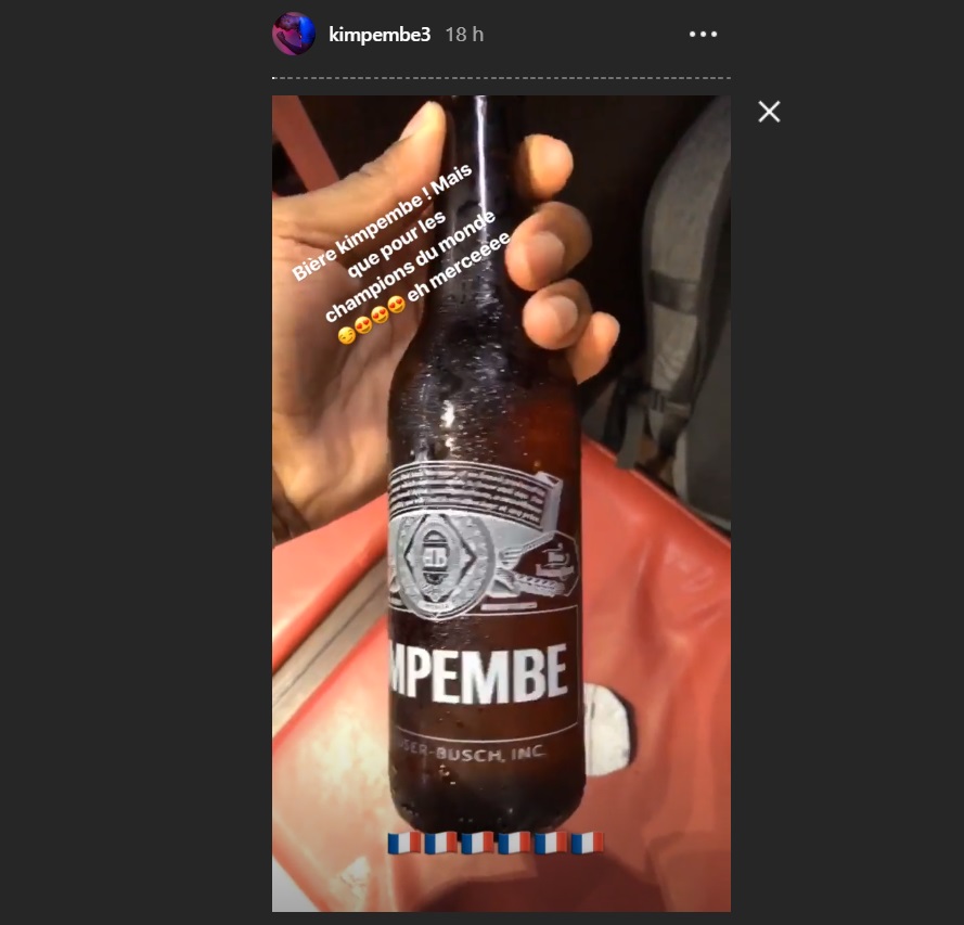 De son côté, Budweiser avait réservé une petite surprises aux champions du monde avec des bouteilles de bière à leur nom comme le montre Kimpembe sur son compte Instagram.
