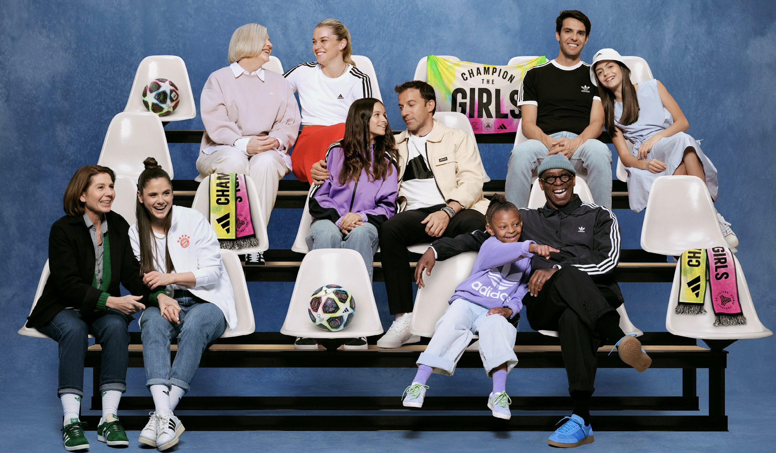 Pour accompagner le lancement de « CHAMPION THE GIRLS », certains athlètes emblématiques d’adidas ont été photographié avec leurs filles. On y retrouve ainsi Kaka et Alessandro Del Piero accompagnés de leurs filles et Ian Wright, de sa petite fille. On voit également Sarah Zadrazil et Alessia Russo avec leurs mères.
