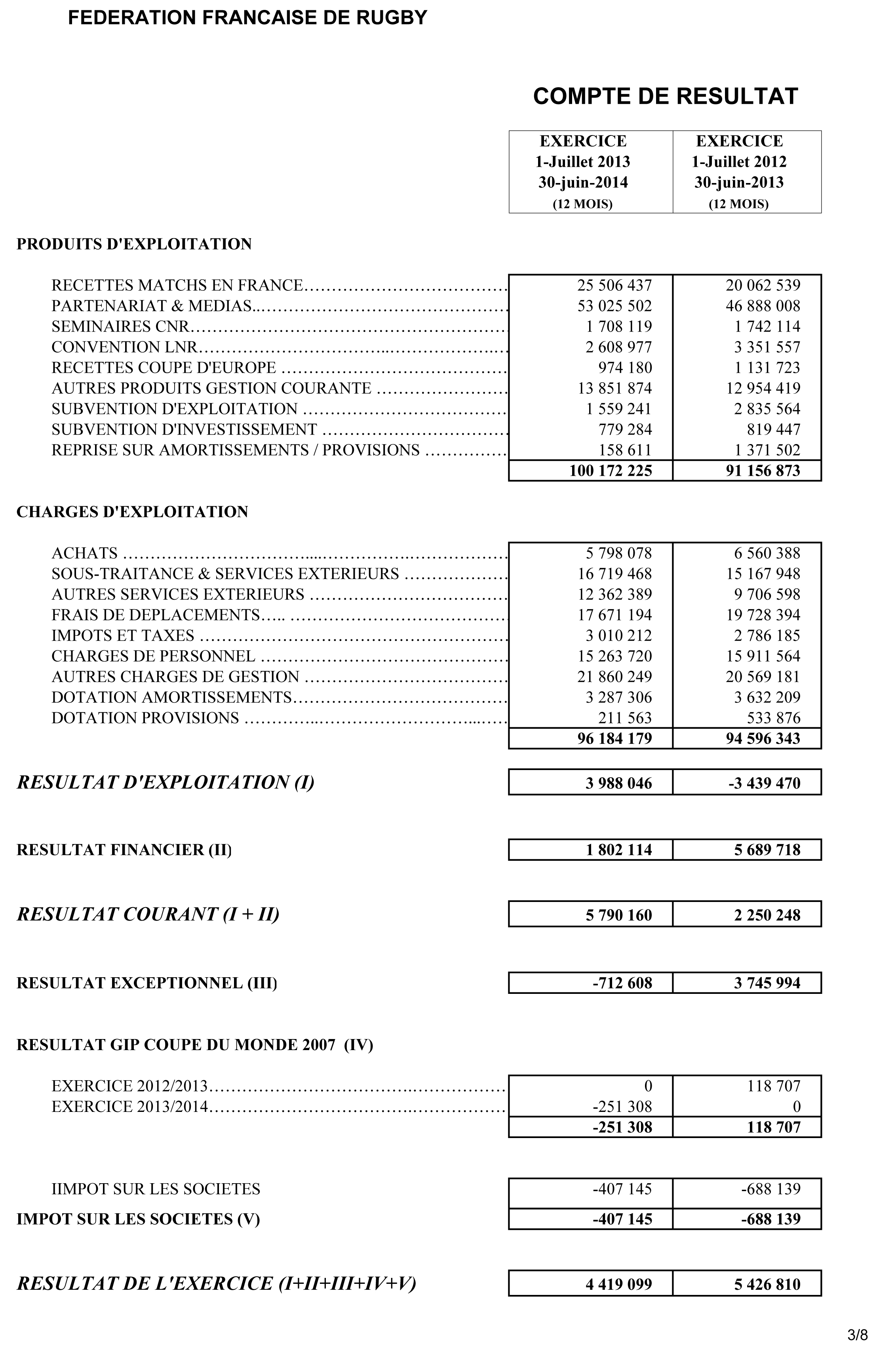 Vendredi dernier – à l’aube du match France – Argentine – l’Assemblée Générale financière 2014 de la Fédération Française de Rugby a présenté les chiffres business de la saison 2013/2014.