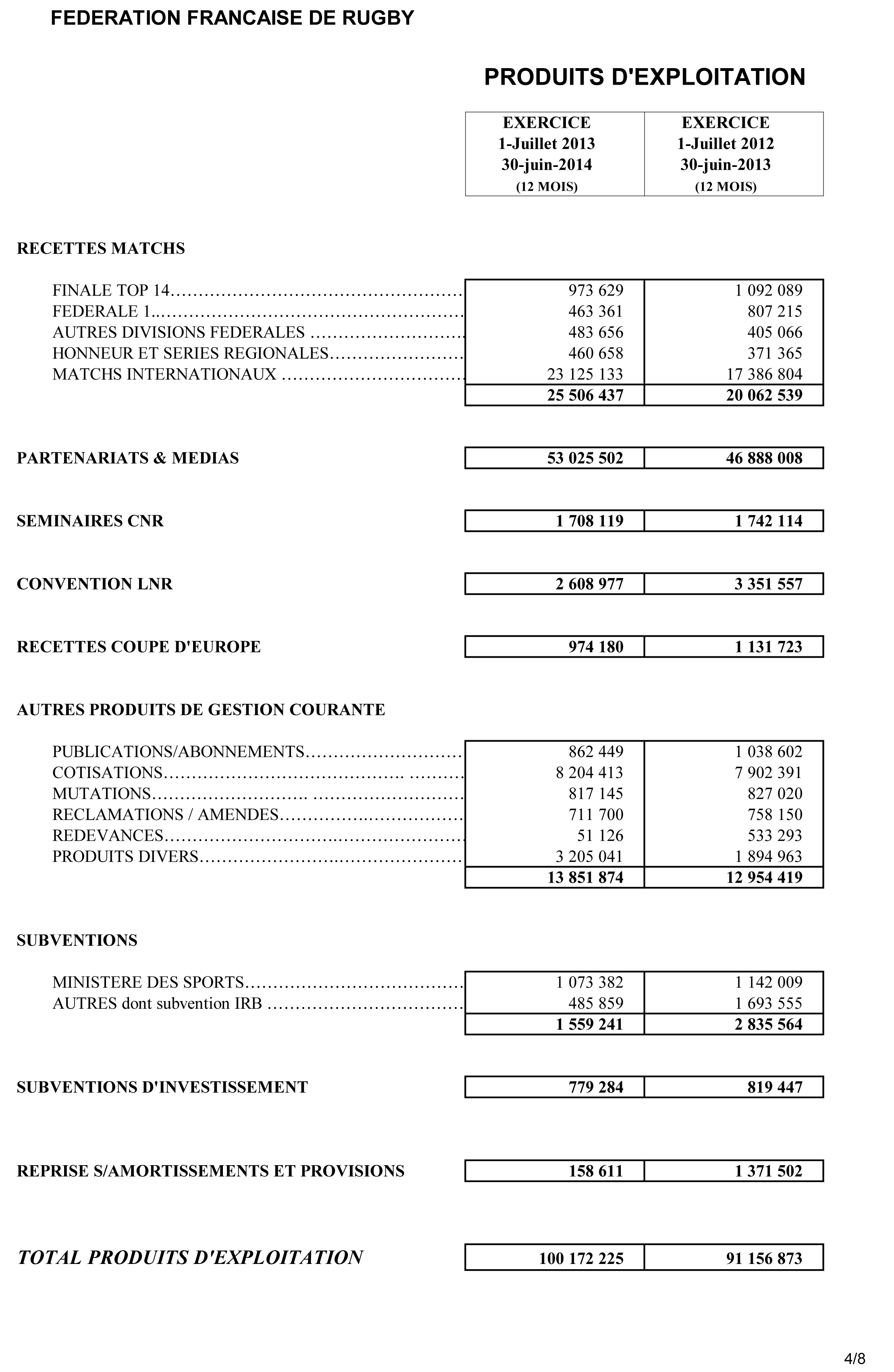 La FFR a ainsi réalisé un chiffre d’affaires record de 100,2 millions d’euros, en hausse de 10% par rapport à 2013 et qui dépasse pour la première fois la barre des 100 millions d’euros. Le résultat d’exploitation est positif, à hauteur de 3.9 millions d’euros (contre – 3.4 millions d’euros en 2013). L’Assemblée Générale a décidé de remonter en fonds propres le résultat net de 4.4 millions d’euros, poursuivant ainsi la consolidation de ceux-ci.