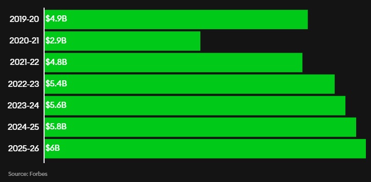 Pour la saison 2025-2026, la NHL tablerait ainsi sur des revenus de 6 milliards de dollars, soit une augmentation de 22% par rapport à 2019-2020 comme le rapporte Forbes.