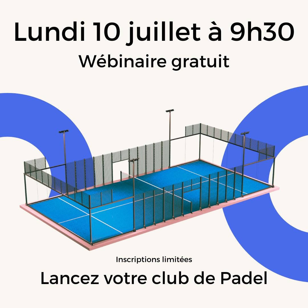 « Ce webinaire gratuit vise à répondre aux nombreuses questions qui habitent les porteurs de projets en padel. L’objectif est de donner une orientation, de détailler le processus de création d’un club de padel, d’expliquer le fonctionnement du marché… Bref, de fournir des informations concrètes et pratiques qui sont souvent difficiles à trouver pour les personnes désireuses de se lancer dans l’aventure du padel » nous précise Loïc Tap, fondateur de Gestion Sports.