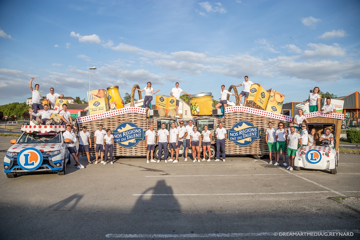 Pendant les 3 semaines, le dispositif de 9 véhicules (24 personnes)le plus important avec Vittel – va offrir 1,2 million échantillons de produits estampillés « Nos Régions ont du talent ». L’occasion de valoriser la marque terroir de l’enseigne auprès du public et de générer du trafic dans les 691 magasins répartis dans l’Hexagone.