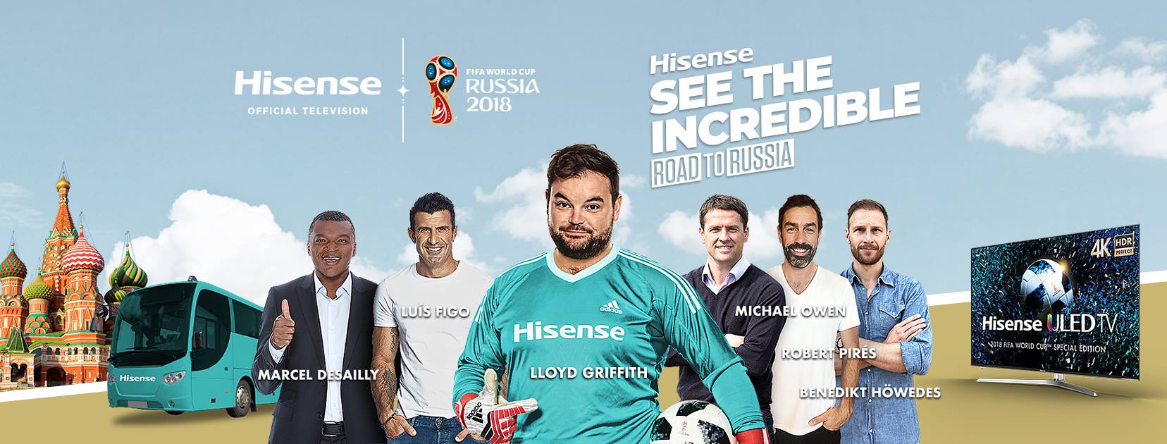 Pour l’occasion, Hisense mise sur l’humoriste anglais Lloyd Griffith. En parallèle Hisense s’est entouré de légendes du football : Robert Pirès, Marcel Desailly, Luis Figo, Michael Owen et Benedikt Höwedes. Hisense est accompagné par Lagardère Plus dans son voyage, qui sera à suivre sur les réseaux sociaux, notamment au travers du hashtag #sharetheincredible.