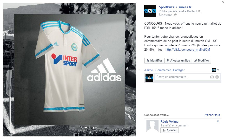 Pour participer, il vous suffit de pronostiquer le score du dernier match de la saison de l’OM samedi prochain contre le SC Bastia en commentaire du post Facebook concerné ! Vous avez jusqu’au samedi 23 mai 20h50 pour effectuer votre pronostic ! ;-) Un tirage au sort viendra départager les éventuels bons pronostiqueurs.
