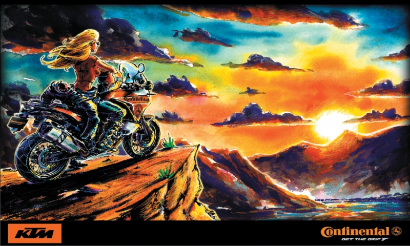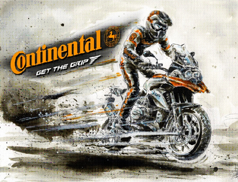Sponsor de l’Euro depuis 2008 et partenaire officiel de la Coupe du Monde de Football 2014, Continental AG est aujourd’hui le 4e fabriquant de pneus à l’échelle mondiale. Malgré quelques passages à vide, comme la fermeture en 2009 des usines de Clairoix (France) et d’Hanovre (Allemagne) et le licenciement de 1 900 personnes, l’entreprise allemande refait surface. Le rachat récent de Veyance et l’intégration de 9 000 employés aux effectifs du Groupe témoigne de la croissance de Continental, numéro 1 outre-Rhin. Pour la promotion de ses pneus hiver pour moto ContiMotion, ContiMove 365 et ContiRoadAttack 2 Evo, Continental s’associe à nouveau avec le dessinateur Philippe Gürel.