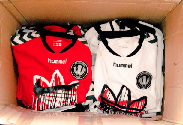 La marque danoise Hummel avait elle aussi sponsorisé des maillots qui avaient fait sensation. Au centre l’artiste Zevs avait recréé un logo mêlant les marques concurrentes adidas et Nike.