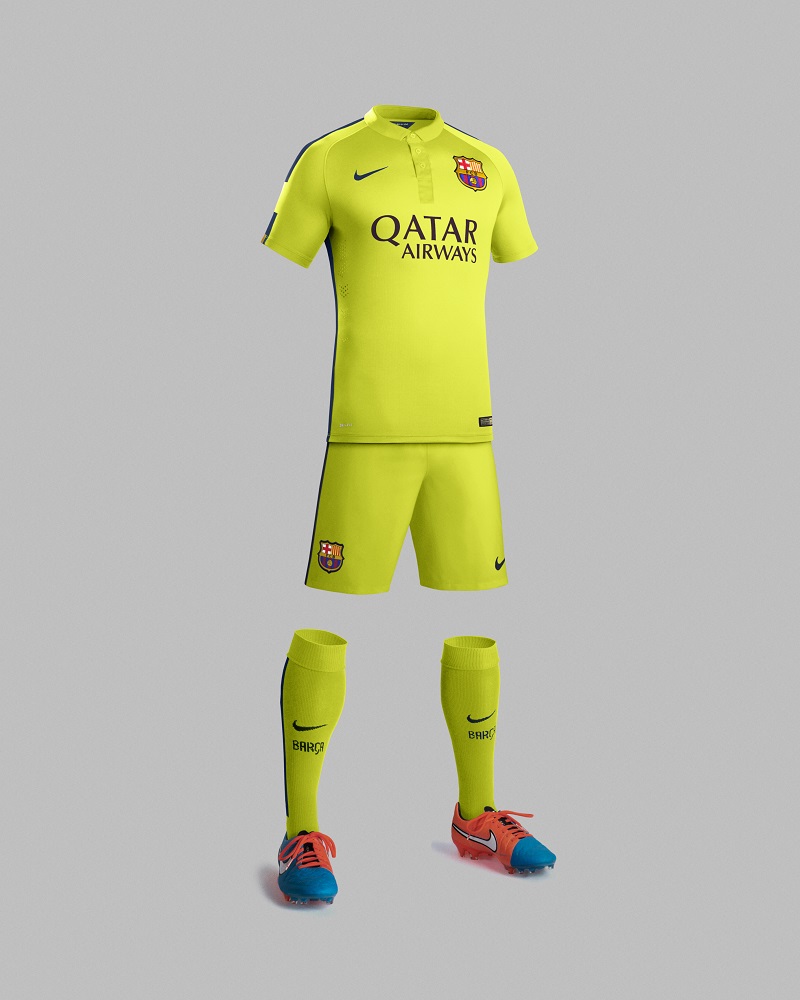 Alors que la Ligue des Champions 2014/2015 débute ce soir, Nike dévoile les nouveaux maillots third de plusieurs de ses équipes. Dans la continuité du 3ème kit du PSG dévoilé hier, Nike a décidé de miser sur des couleurs flashy pour les tuniques du FC Barcelone (jaune), de la Juventus Turin (vert pomme), de l’Inter Milan (bleu turquoise) et de Galatasaray (violet). De l’originalité dans les couleurs mais certainement pas dans le style des maillots qui ont été conçus sur le même template..