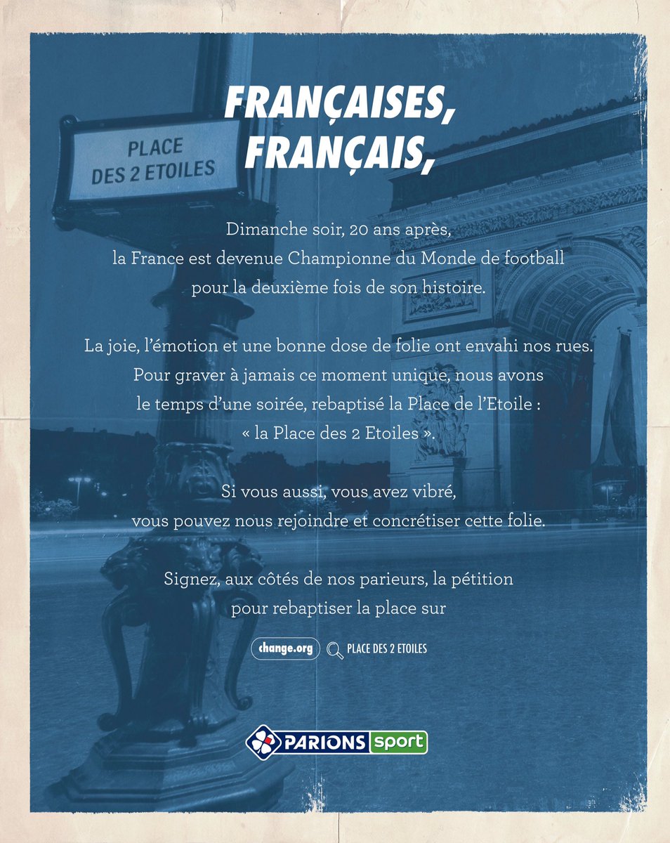 La pétition ➡️ https://t.co/zxqNmw1PSS #PlaceDes2Etoiles pic.twitter.com/uQ8CUWfDnq