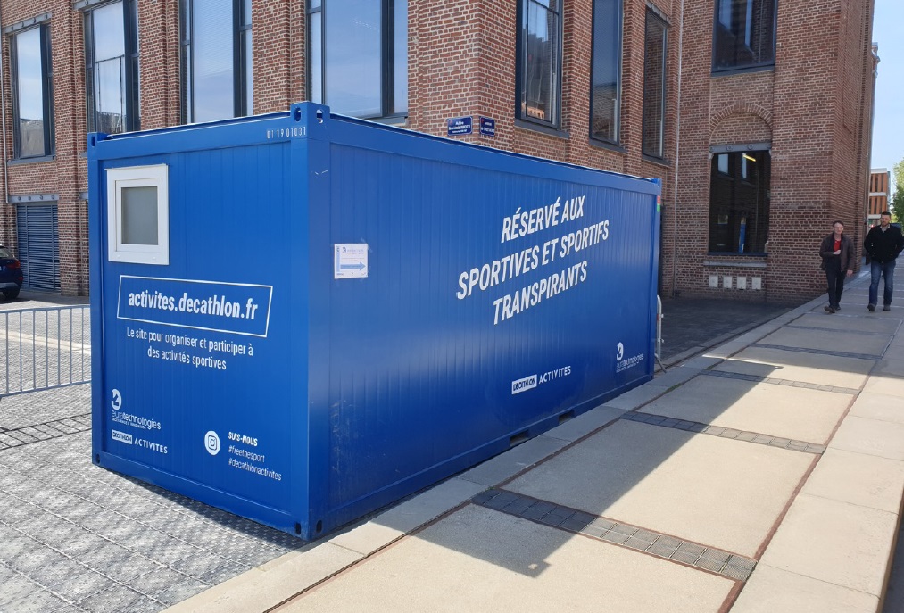 Dans cette optique, Decathlon a récemment conçu un « container douche » afin de répondre à un besoin évident des sportifs qui pratiquent ou qui souhaitent pratiquer à proximité de leur lieu de travail. Une station de lavage pour sportifs (3 douches hommes et 3 douches femmes) qui est installée depuis quelques semaines à Lille sur le site Euratechnologies, pôle accueillant de nombreuses entreprises et startups.