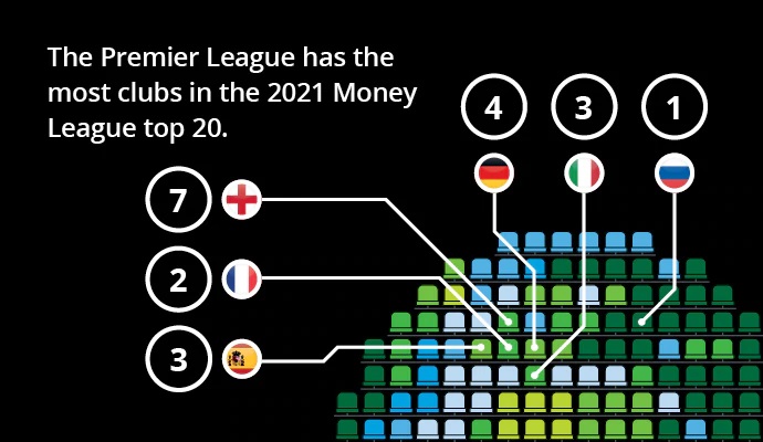 - L’Angleterre est le pays le plus représenté dans le Top 20 avec 7 clubs
