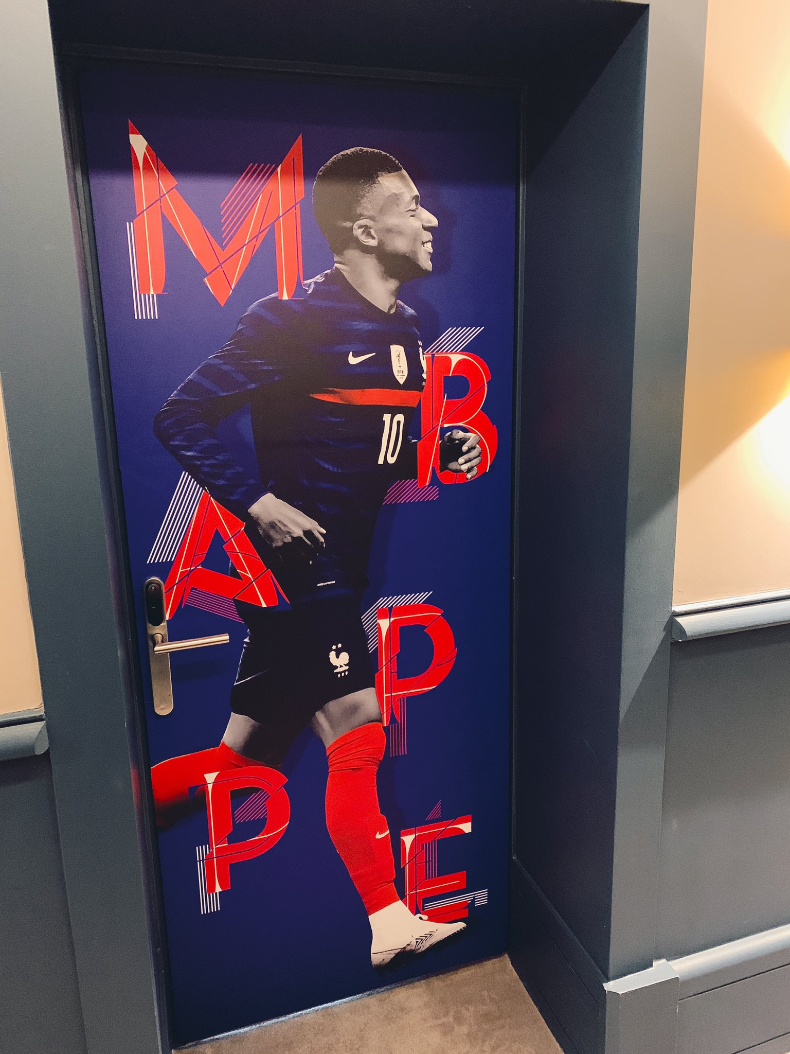 Depuis quelques jours, les Bleus sont à Clairefontaine pour préparer l’UEFA Euro 2020. Ces derniers ont une nouvelle fois eu les honneurs d’un habillage personnalisé de leur porte de chambre.