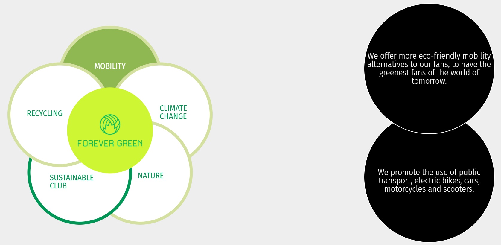 Concrètement le club s’engage à encourager ses spectateurs à privilégier les mobilités douces et à (mieux) recycler. À l’intérieur du Stade Benito Villamarin, le club a installé des éclairages LED. À l’avenir, ce seront des panneaux solaires qui seront installés pour être auto-suffisant en énergie. La billetterie est elle aussi concernée puisque le club a instauré des billets entièrement digitaux, utilisables sur smartphone.