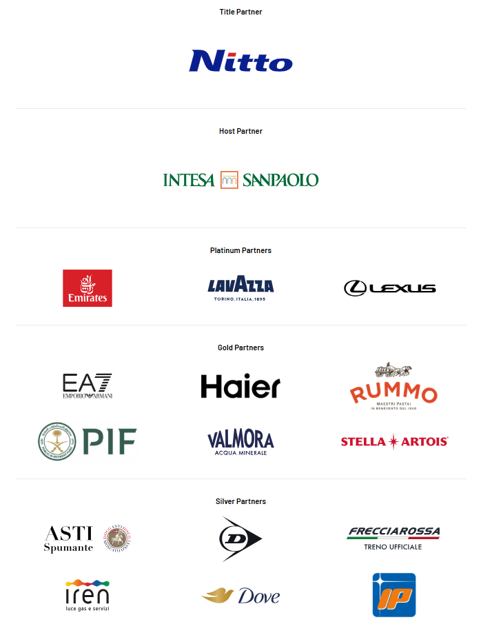 - Silver Partners : Asti Spumante, Dunlop, Frecciarossa, Iren, Dove, IP Group, Italgas, Vechain, Xerjoff, Yokohama, Fage.