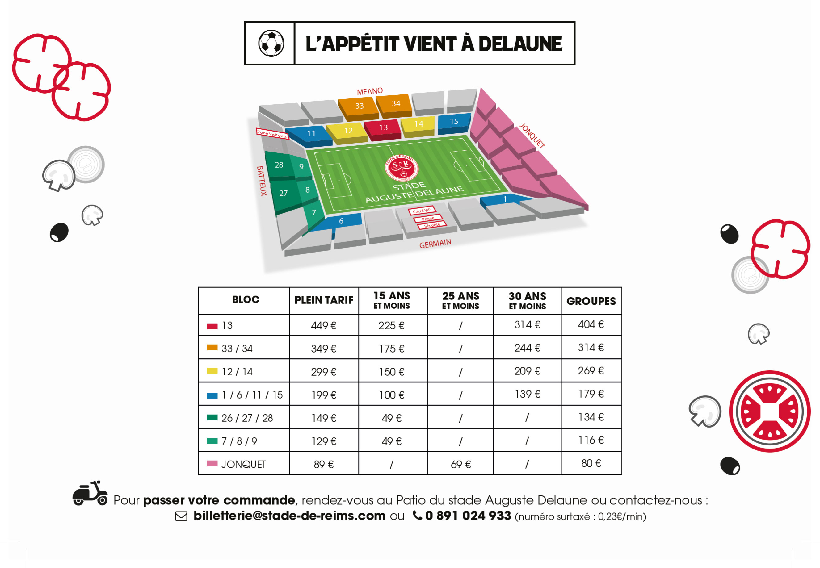 Depuis lundi, le Stade de Reims a lancé sa campagne d’abonnement pour la saison 2017-2018. En clin d’oeil au Naming Domino’s Ligue 2, le club a décidé de communiquer sur ses offres avec des formules à la carte façon pizza.