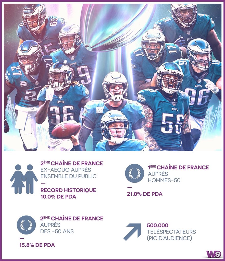 Après plusieurs années de diffusion en clair sur la chaîne W9 (groupe M6), le Super Bowl sera dorénavant diffusé sur une des chaînes TNT du Groupe TF1.