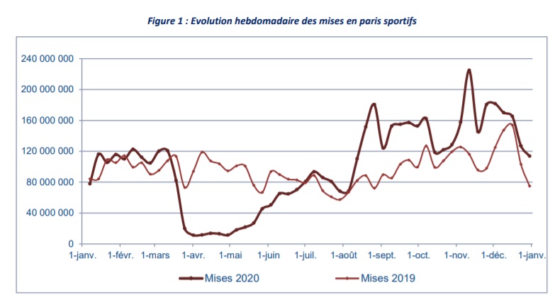 10 ans après l’ouverture du marché des paris sportifs en ligne en 2010, l’année 2020 marquée par un calendrier sportif chamboulé (arrêt de championnats, reports de compétitions majeures comme l’UEFA Euro 2020 et les JO de Tokyo,…) marque un tournant selon l’ANJ avec des performances historiques pour les paris sportifs, hippiques et le poker en ligne.