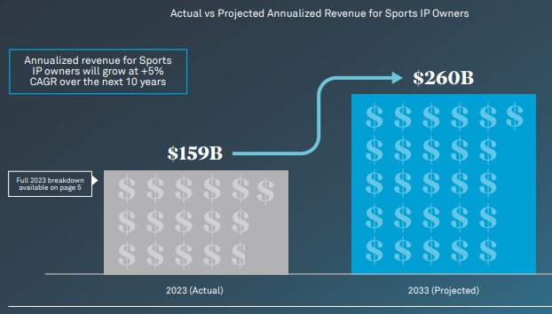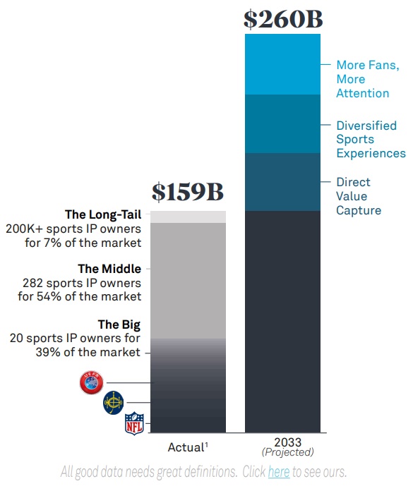 Il y a quelques jours, la société Two Circles a publié l’étude « Sports’ Sprint to $260B » qui explique comment les propriétaires de propriété intellectuelle sportive pourraient cumuler, en 2033, 260 milliards de dollars de revenus.