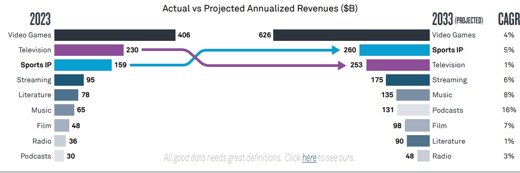 Pour Two Circles, l’industrie des « sports IP » pourrait ainsi dépasser la télévision et se placer juste en dessous des jeux vidéos.