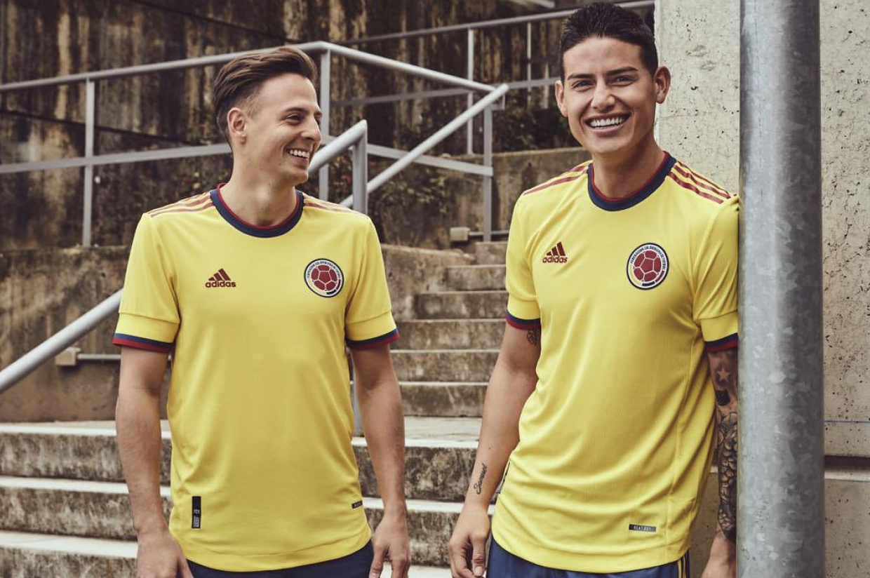 Pour la Colombie, adidas a davantage joué la carte de la sobriété avec un maillot col rond avec ses trois bandes rouges sur les épaules.