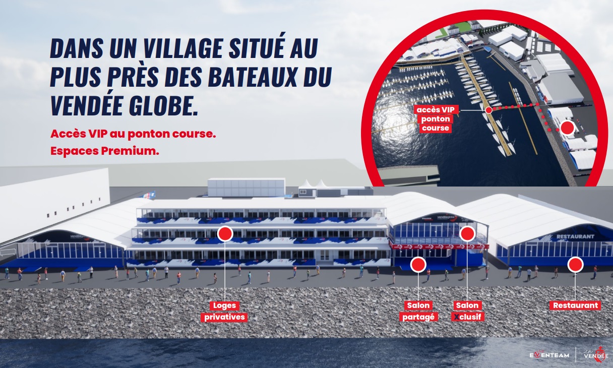 « Avec des hospitalités innovantes et une expérience spectateur décuplée, les visiteurs seront invités à se plonger dans un véritable voyage à la gloire des navigateurs qui ont fait l’histoire du Vendée Globe. Au cœur de son espace VIP, le village Officiel hospitalités retracera la légende du Vendée Globe, des plus beaux exploits jusqu’aux plus grandes innovations technologiques dans le domaine de la voile. Animations sensorielles et réalité virtuelles permettront d’appréhender la palpitante aventure de ces skippers d’exception » précise un communiqué.