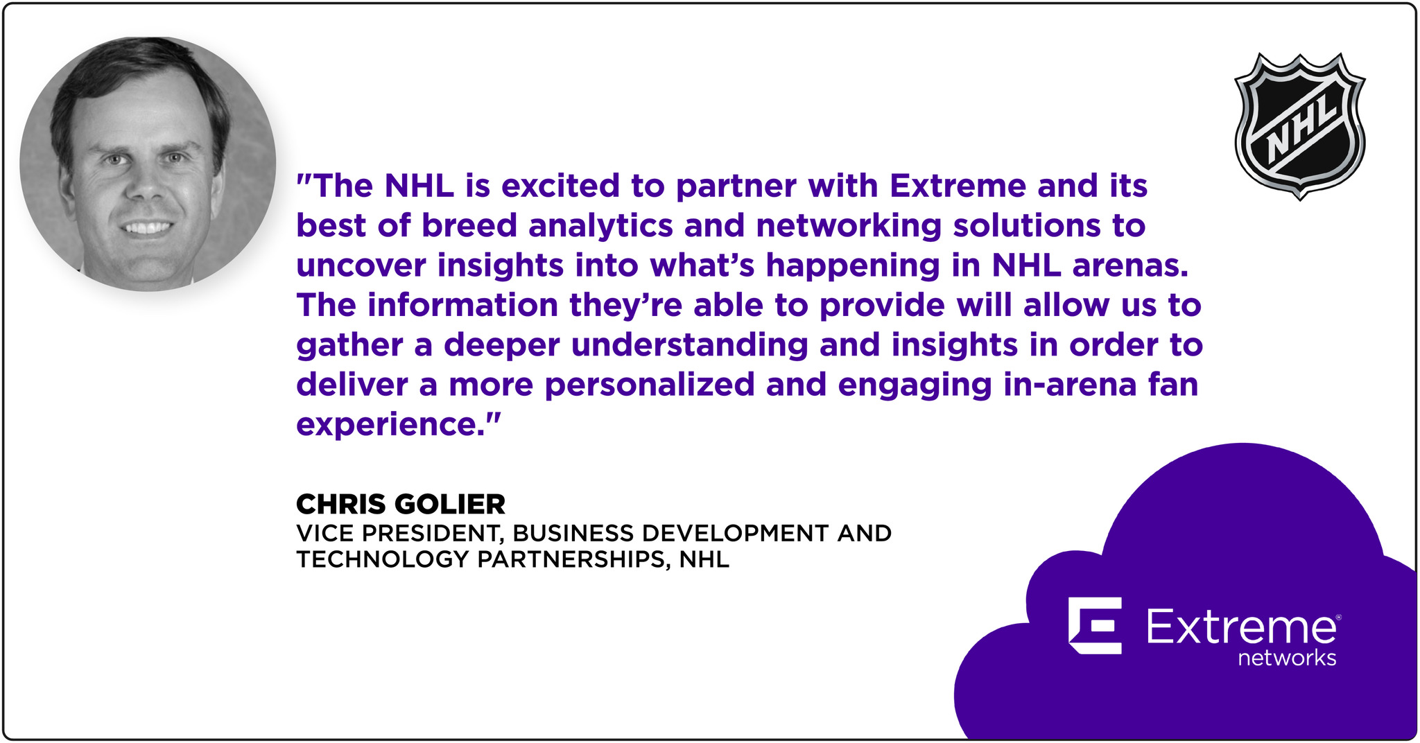 Concernant la NHL, Extreme Networks (basée à San José aux Etats-Unis), a signé un contrat jusqu’en 2026 et devient le partenaire officiel Wi-Fi de la ligue de hockey. En plus d’équiper certaines Arenas, Extreme Network fournira également de nombreuses données exploitables.