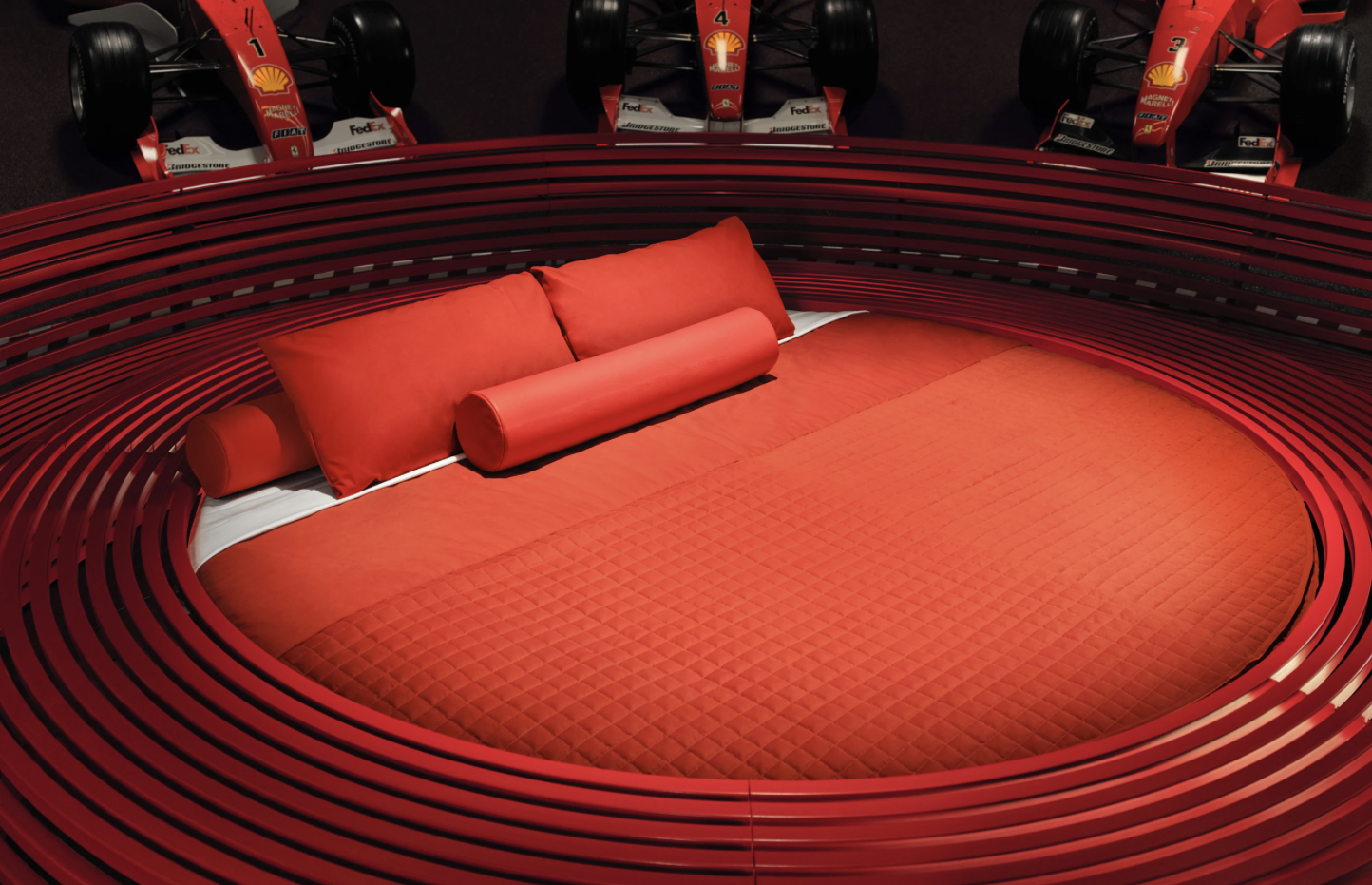 À l’occasion du Grand Prix d’Emile-Romagne de Formule 1, Airbnb propose une nuit dans un lit fait du même cuir que les sièges des Ferrari dans son musée.