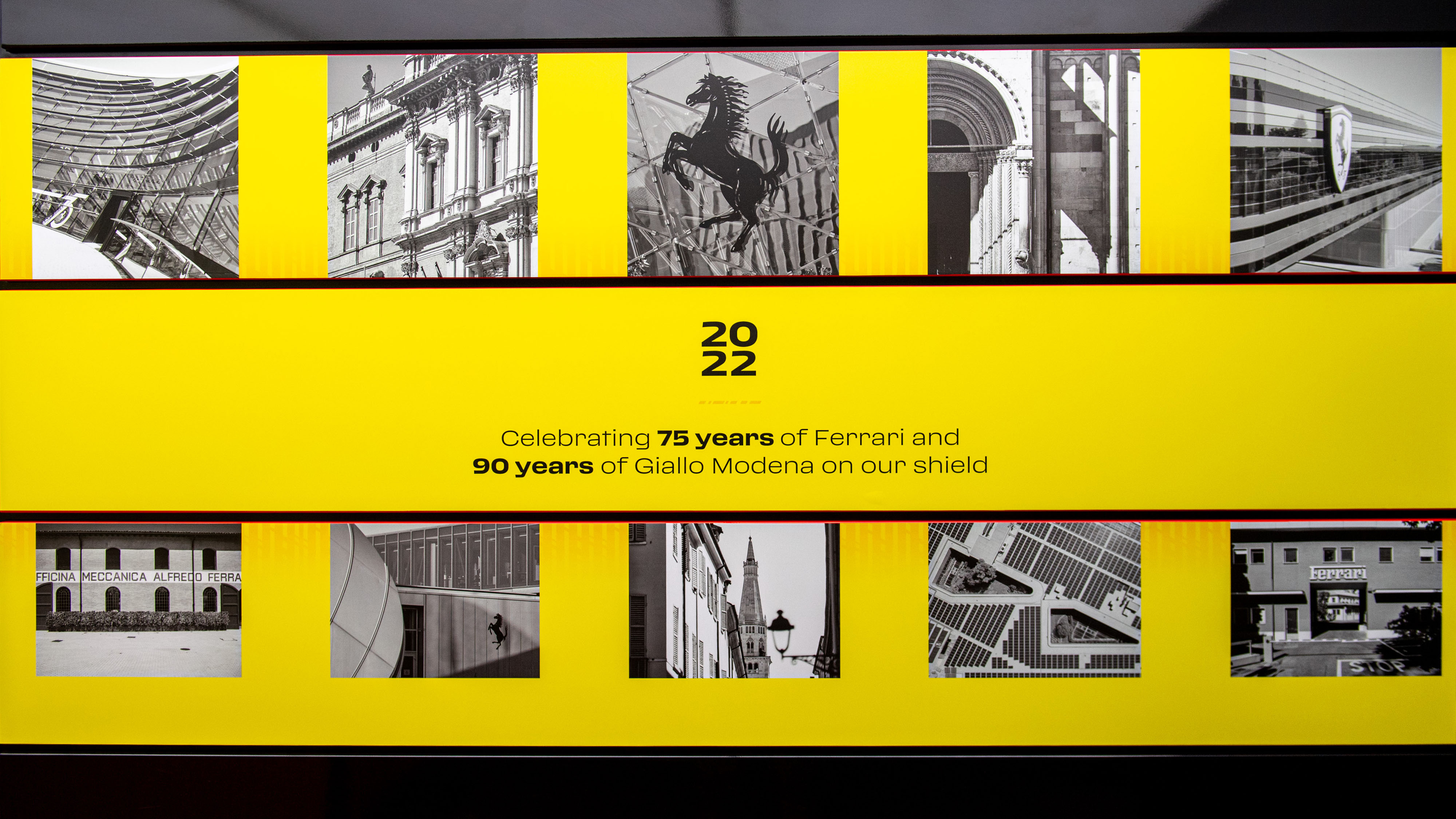 Chez Ferrari, il n’y a pas de rouge sans jaune. Pour célébrer les 75 ans de la marque (1947-2022), les monoplaces des pilotes Charles Leclerc et Carlos Sainz arboreront du jaune ici et là, notamment au niveau du capot moteur avec le chiffre 75 et le cheval cabré. Sur le dessus de l’aileron arrière (visible de face), le nom Ferrari sera inscrit en jaune, un espace qui est depuis le début de la saison libre de tout sponsor.