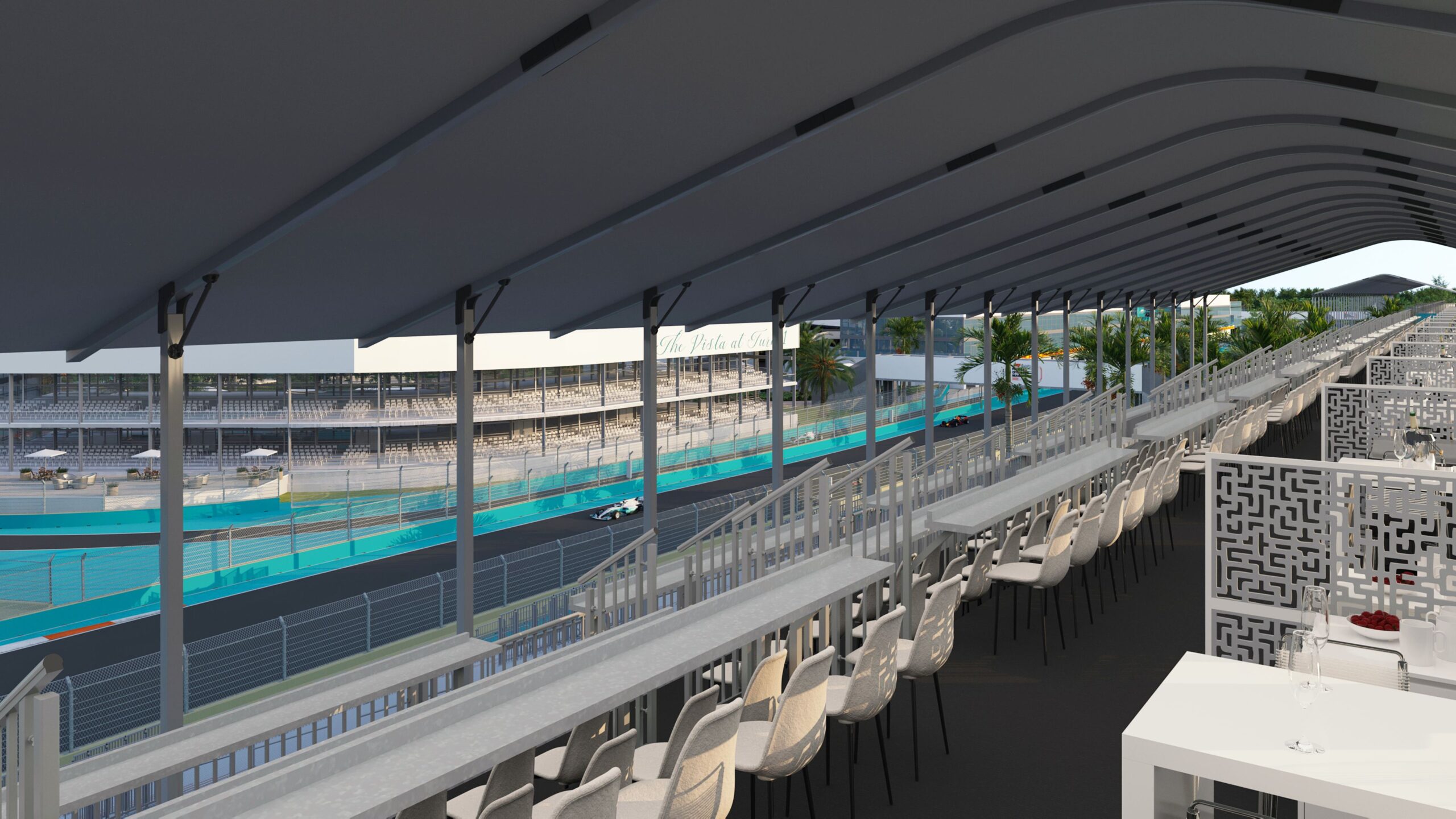 Grâce à l’investissement du président du Grand Prix, du stade et des Miami Dolphins Stephen Ross, un tout nouveau Paddock Club permanent a été construit au-dessus des garages sur la voie des stands. Il dispose d’une terrasse d’observation sur le toit qui s’étend jusqu’au Hard Rock Stadium. La nouvelle installation à trois niveaux accueille 6 000 invités et offre une vue imprenable sur la ligne de départ / arrivée.