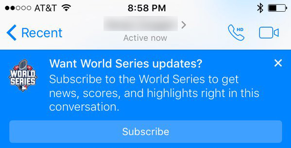 Ainsi, certains utilisateurs américains ont pu souscrire aux « MLB world series updates » pour recevoir les infos, les scores ou encore les highlights directement via le service Messenger de Facebook. Une finale qui a sacré hier soir les Kansas City Royals.