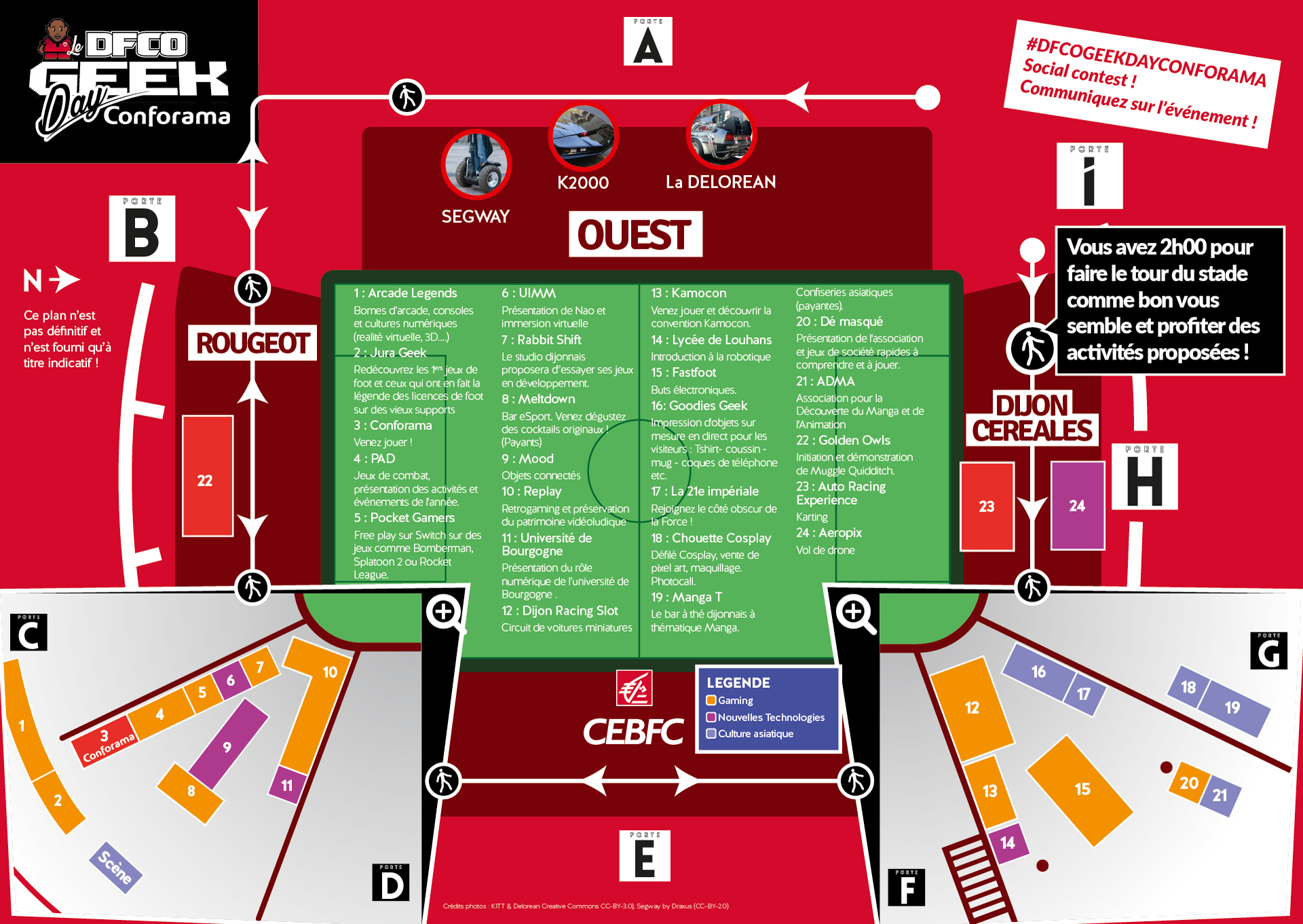 Pour un avant-match « hors du commun », ce DFCO Geek-Day Conforama mettra à l’honneur trois thèmes : le gaming avec des animations de rétrogaming, arcade, circuits de course géant ou encore tirs au but numérique; la culture manga (initiation, dégustation, exposition, cosplay ou encore maquillage) et les nouvelles technologies avec de la réalité virtuelle, des démonstrations de drones, de la robotique et toutes sortes d’objets connectés.