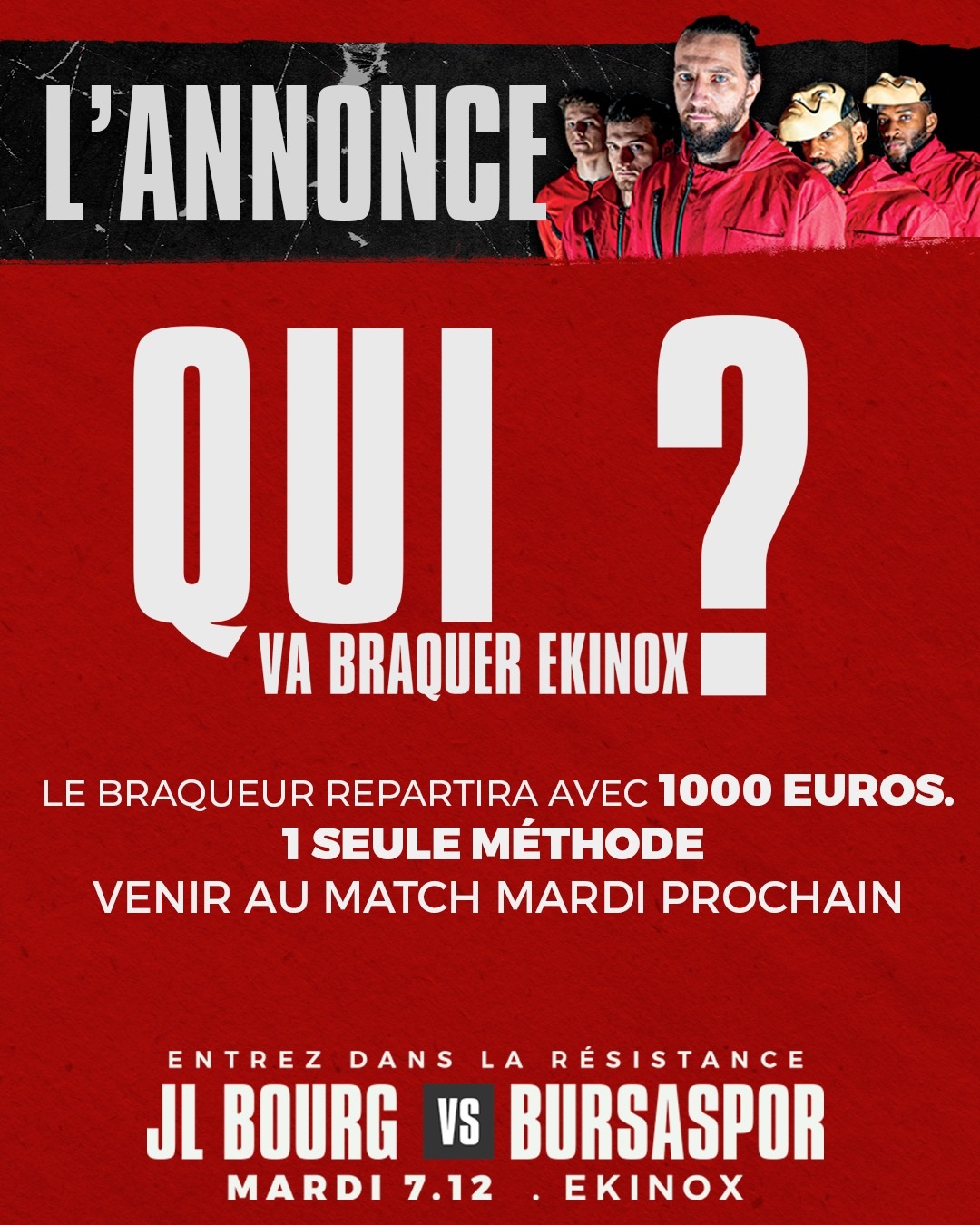 Début décembre, le club de basket de la JL Bourg Basket a offert à ses supporters une soirée spéciale autour du thème de la série « La Casa de Papel ».