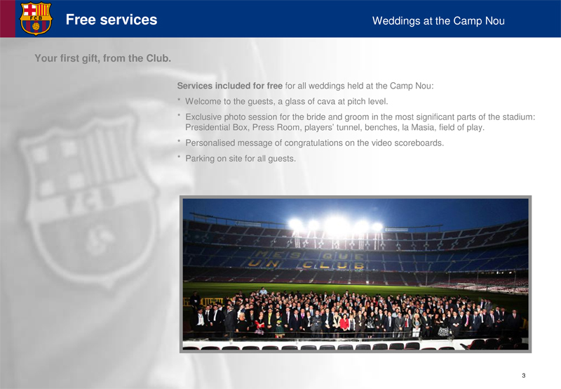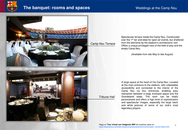 Un mariage au Camp Nou qui n’est pas une première. En effet, le club a célébré son premier mariage à l’été 2011. Depuis, le FC Barcelone développe une offre commerciale dédiée aux mariages avec cérémonie civile et banquet. De nombreux services additionnels comme la présence de trophées, transport dans le bus officiel des joueurs, DJ, hôtesses ou encore show des Pom Pom Girls de l’équipe de basket feront rapidement monter la note. Une diversification des recettes stade (musée, terrasse lounge…) qui assure cependant plus de retombées médias que d’argent dans les caisses du club.