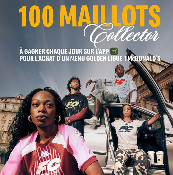 Au coup d’envoi de cette nouvelle saison de Ligue 1, la marque américaine a aussi offert la possibilité à ses clients les plus fidèles de remporter des maillots McDo réalisés par Kappa. « Design exclusif, édition limitée, style certifié. Quatre modèles, quatre vibes… mais le temps presse : les tirages au sort quotidiens prennent fin le 15 septembre », écrit l’enseigne au M jaune sur son site et ses réseaux sociaux. Avis aux amateurs.