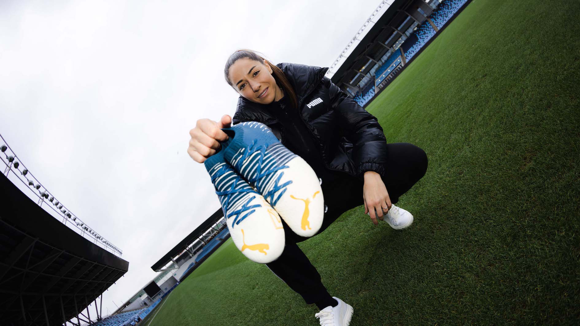 La Future Z 1.2 est, elle, blanche et bleue avec un logo Puma jaune sur le devant de la chaussure. Elle sera portée par la joueuse star de Manchester City Vicky Losada.