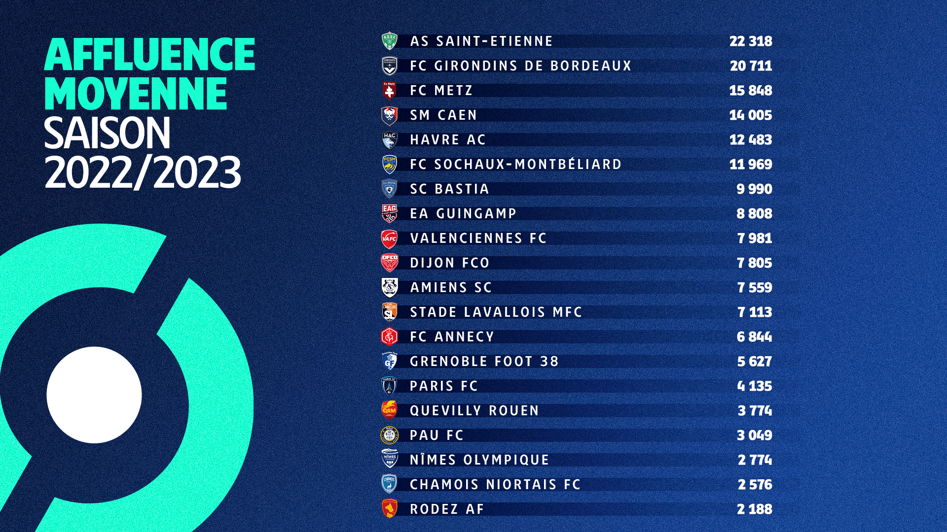Un spectacle de la Ligue 2 BKT qui a attiré plus de 3,24 millions de spectateurs cumulés dans les stades lors de la saison 2022-2023 écoulée. L’affluence moyenne s’élève à 8 680 spectateurs par match, un record pour le championnat.