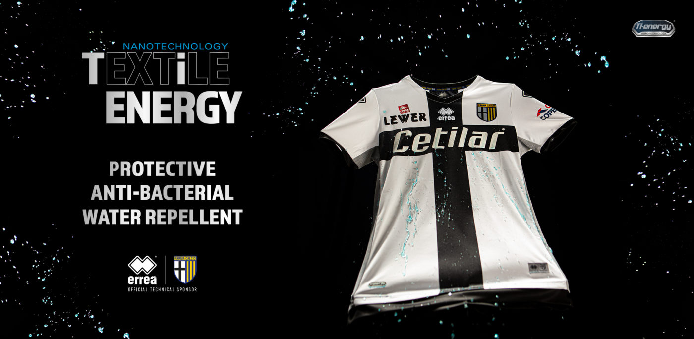 Ce week-end, le club Parma Calcio 1913 portera un maillot réalisé dans le tissu antibactérien Ti-energy Erreà « pour mieux protéger ses athlètes ».