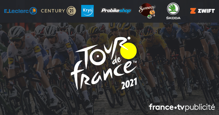 Pour cette édition qui retrouve sa place en juillet, la régie publicitaire de France TV a réussi à convaincre 7 annonceurs : E.Leclerc, Century 21, Krys, Probikeshop, Škoda, Senseo et Zwift.