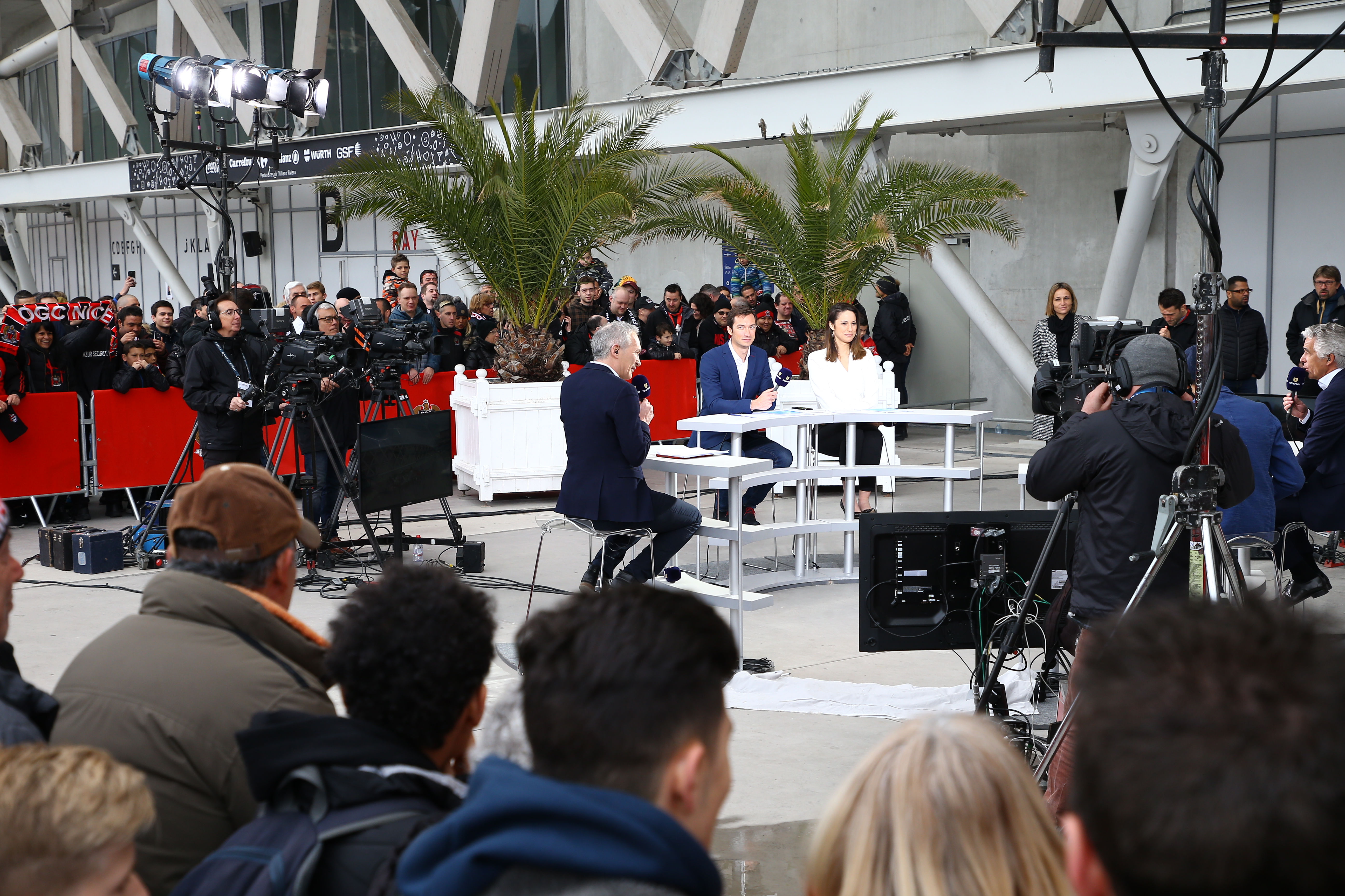 Exceptionnellement, Téléfoot a même eu lieu sur le parvis. Les spectateurs ont pu assister à l’émission et ainsi se rendre un peu plus compte du caractère unique de cette journée, puisqu’en 40 ans d’existence, Téléfoot ne s’était jamais délocalisée de la sorte.