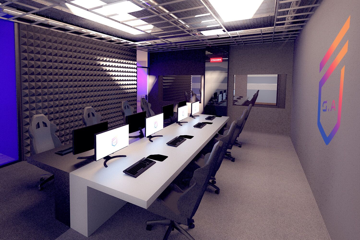 Les locaux sont aménagés à travers 8 espaces de travail et de vie comprenant notamment une arena (enceinte réservée aux compétitions esport et aux entraînements en conditions réelles), des rooms d’immersion pour le co-studying, un studio de streaming, une salle de sport et une VR-room.