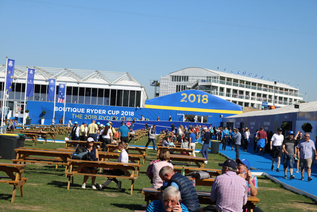 Le merchandising de la Ryder Cup 2018 est bien huilé. A l’entrée des boutiques, le personnel propose des paniers aux spectateurs 🛒#rydercup #rydercup2018 #golf pic.twitter.com/1shB5RSJ77