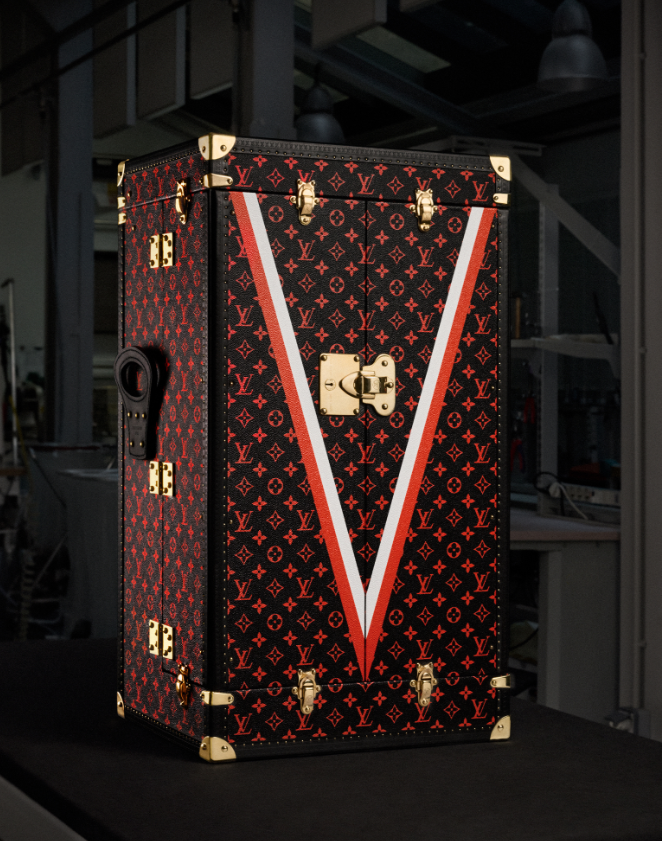 Symbole de cette union, cette malle trophée, conçue sur mesure pour l’édition 2025, est fabriquée à la main dans l’historique atelier d’Asnières. Revêtue pour la première fois d’une toile Monogram rouge, elle arbore le V de la Victoire, en hommage aux couleurs de Monaco. Ce chef-d’œuvre d’artisanat illustre le lien entre les ateliers de la Maison et les paddocks des écuries : une même quête de précision, d’élégance et de performance.