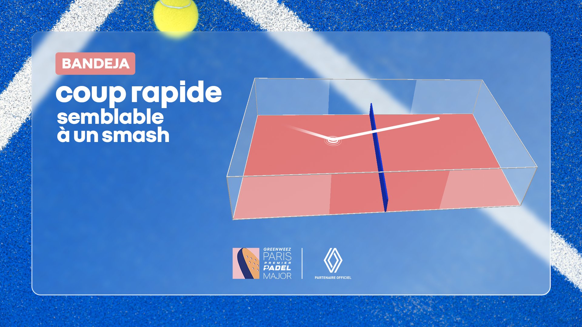 Renault, sponsor visible sur le filet à Roland-Garros depuis cette année, l’est également pour le @ParisPadelMajor, d’un seul côté du filet cette fois, face caméra.#greenweezparismajor #renault #padel @renault_fr pic.twitter.com/Ka12fbG6Hy