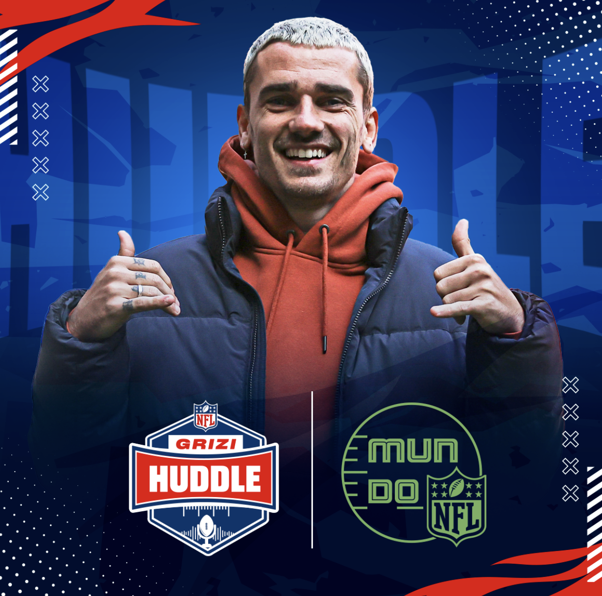 Antoine Griezmann, fan absolu de NFL va animer la « NFL’s Grizi Huddle », une émission en espagnol sur la chaîne Youtube de Mundo NFL.