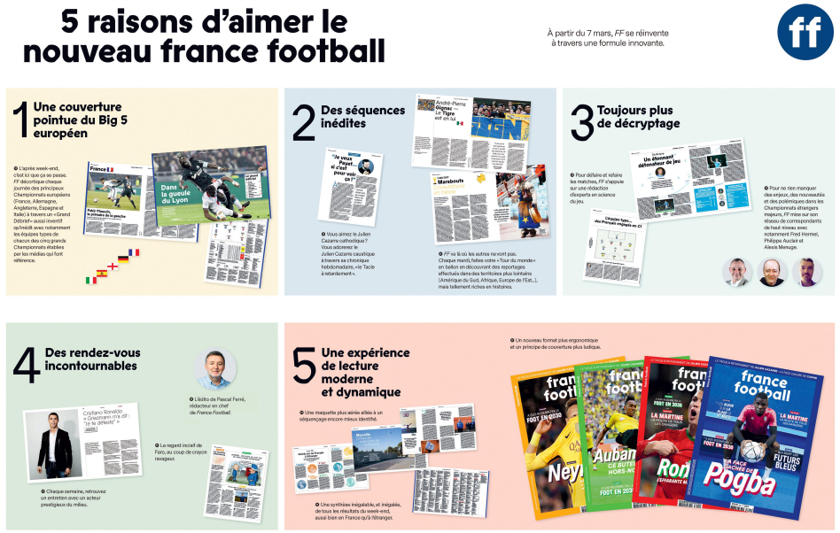 Aujourd’hui, le groupe L’Equipe lance une nouvelle formule de France Football. Nouveau logo, format magazine, relifting… Ce renouveau s’accompagne également d’une refonte éditoriale.