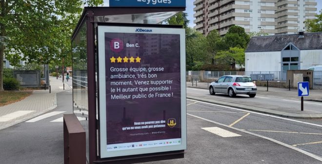 A l’occasion de la reprise du Championnat de France de Handball, le HBC Nantes a lancé une … Lire la suite de Handball – Le HBC Nantes utilise des avis Google laissés sur sa salle (H Arena) dans une campagne d’affichage extérieur