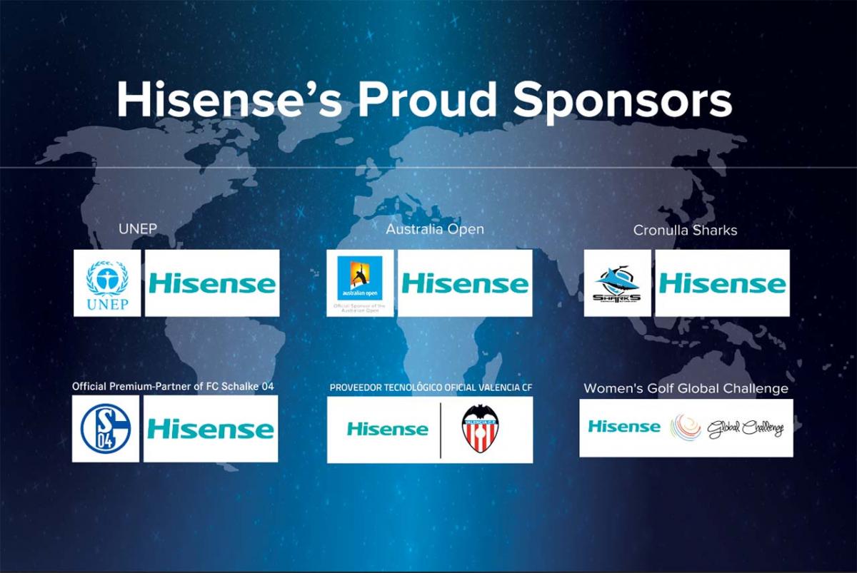 Pour accompagner le développement de sa notoriété, Hisense n’en est pas à son premier coup d’essai dans la communication par le sport. La marque est ainsi associée à l’un des courts principaux de l’Open d’Australie de tennis, l’Hisense Arena. Un contrat de naming prolongé cette semaine pour une durée de trois années supplémentaires. Hisense a également prolongé son contrat avec la fédération australienne de tennis et restera le « Fournisseur Officiel TV et réfrigirateur ». Dans le football, Hisense est partenaire du club espagnol du Valence CF et de Shalke 04.