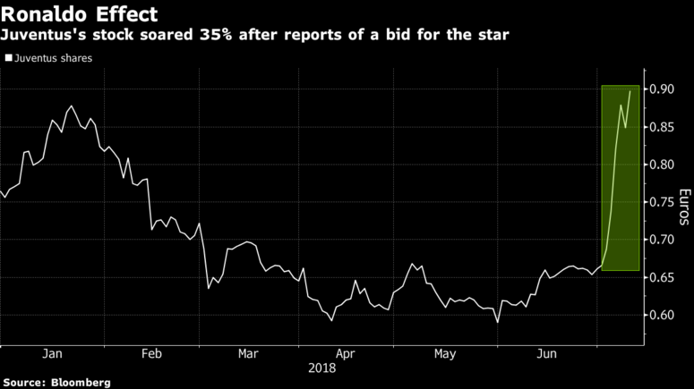 Comme le précise Bloomberg, l’action de la Juventus, club coté en Bourse, a progressé de 35% sur la journée d’hier.