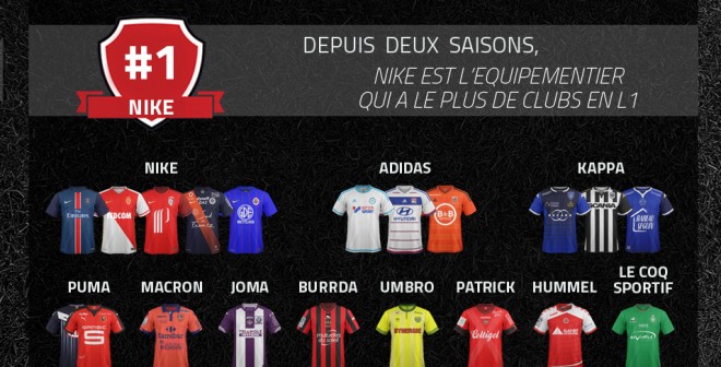 Cette année encore, la bataille des équipementiers fait rage en Ligue 1. Après notre infographie sur les … Lire la suite de INFOGRAPHIE Ligue 1 : la bataille des équipementiers sur la saison 2015/2016 (20 équipes – 588 joueurs)